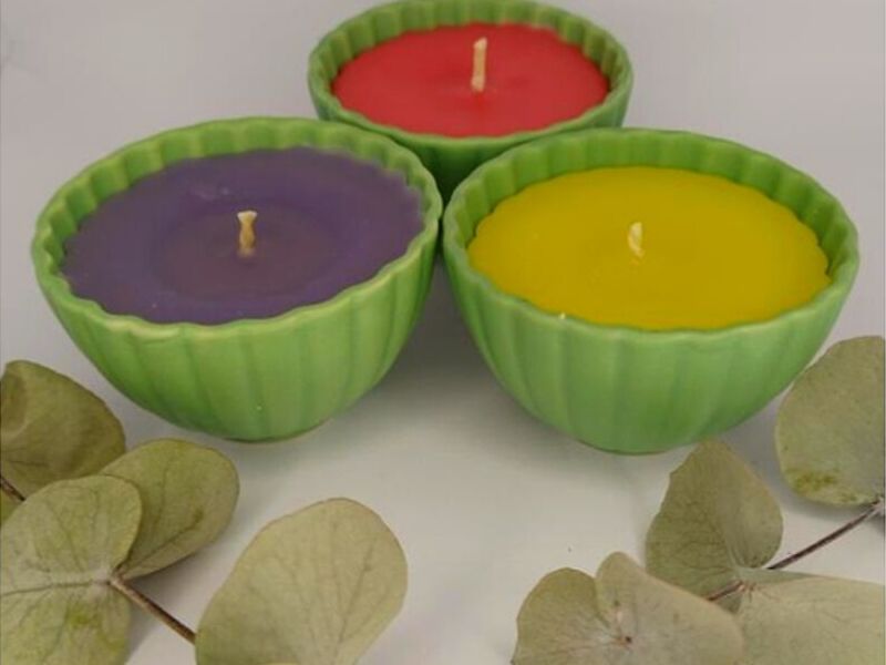 Velas aromaticas artesanales . Vacijas de ceramica : Limón, Frutilla y Lavanda.