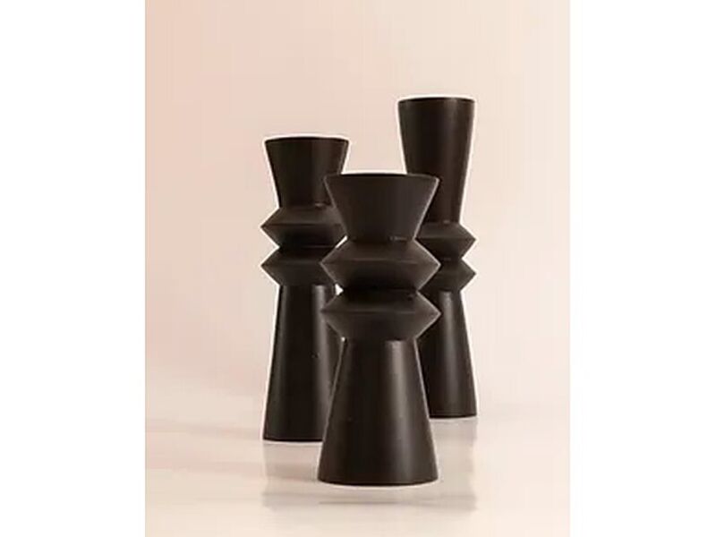 Set x 3 portavelas, torneados en madera acabados en Negro Satinado.
